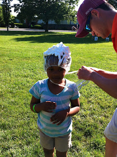 One of our standards of learning is the holiday 4th of July, so every year we have a parade, sing America songs and a picnic. They LOVE it, can you tell?